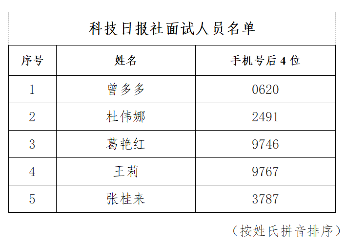 附件:科技日?qǐng)?bào)社面試人員名單