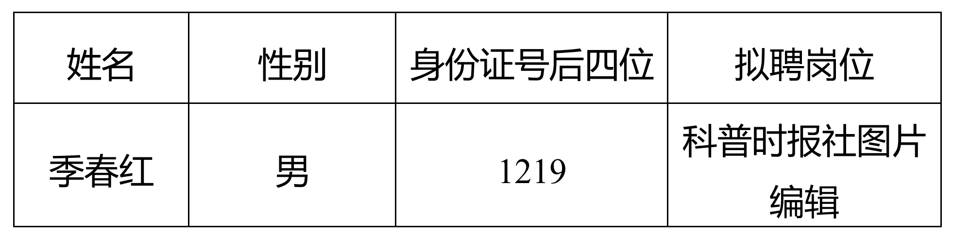根據公開招聘相關規定,科技日報社組織開展了科普時報社圖片編輯公開招聘工作。經過筆試、面試、考察、體檢等程序,研究確定了崗位擬聘人選,現進行公示。