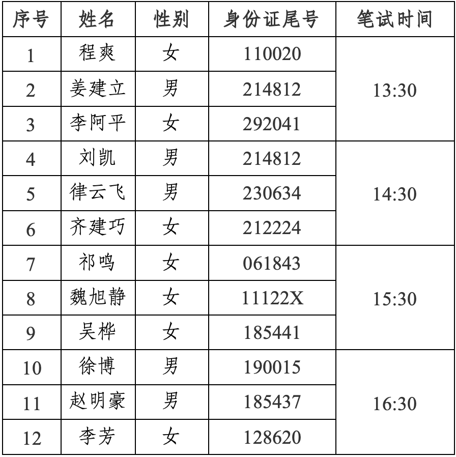 五、筆試人員名單