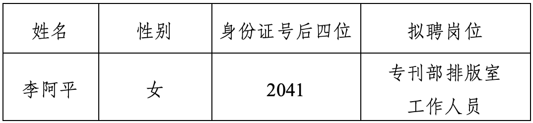 根據公開招聘相關規定,科技日報社組織開展了專刊部排版室工作人員公開招聘工作。經資格審查、筆試、面試、考察、體檢等程序,研究確定了擬聘人員名單,現進行公示。