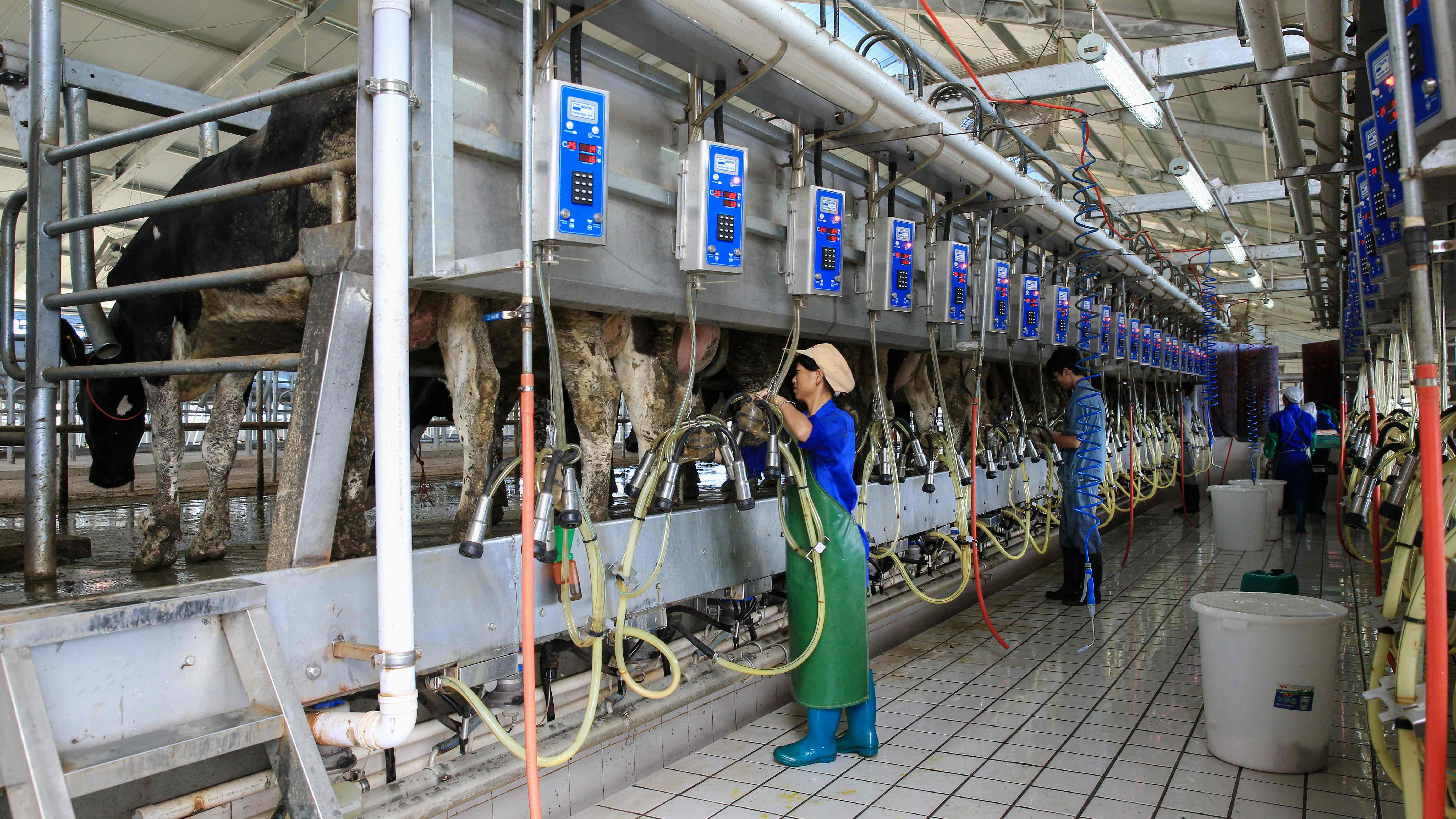 鐘山鎮溫氏奶?;刈詣踊瘮D奶車間。黎遠偉 攝