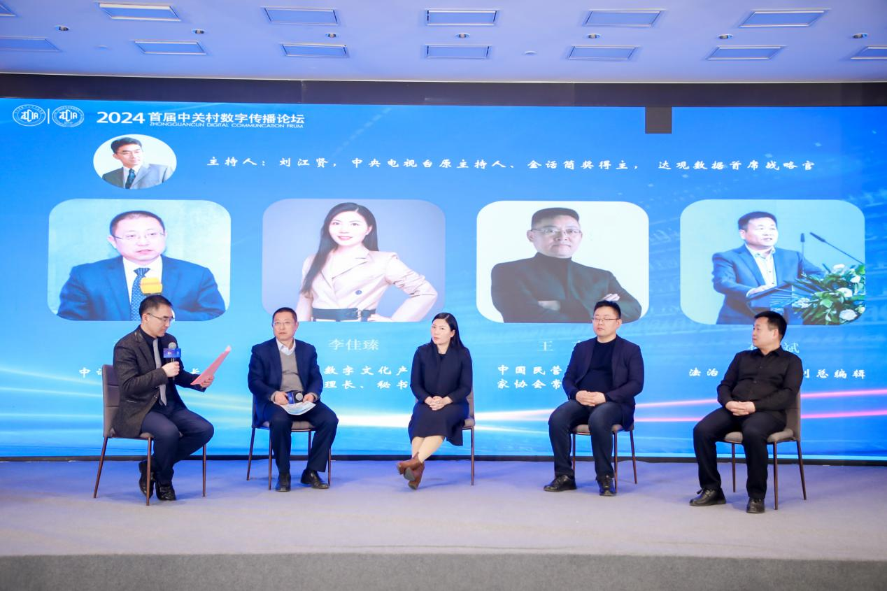 “高端對話”環節由中央電視臺原主持人、達觀數據首席戰略官劉江賢主持。中譯出版社有限公司社長喬衛兵,中關村數字文化產業聯盟副理事長、秘書長李佳臻,中國民營科技實業家協會元宇宙工委常務副會長王東,法治周末報社副總編輯孫繼斌等,共同圍繞“數字傳播的國際合作與創新發展”主題分享見解與洞見,實現智慧碰撞與交融,帶來全新啟示與思考。