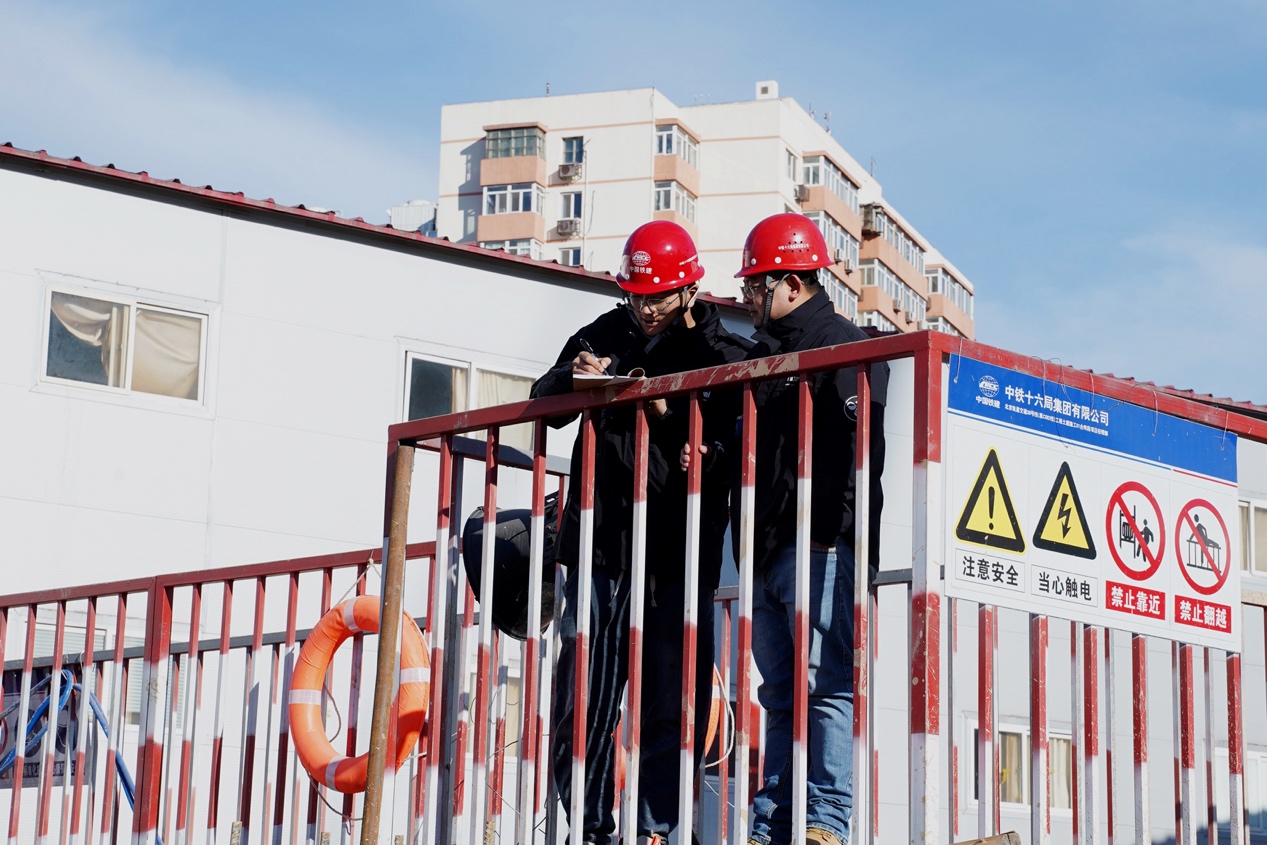 北京市朝外大街一側,中鐵十六局北京軌道交通28號線東大橋站施工現場,勤勞的建設者用奮斗拉開了新春序幕。