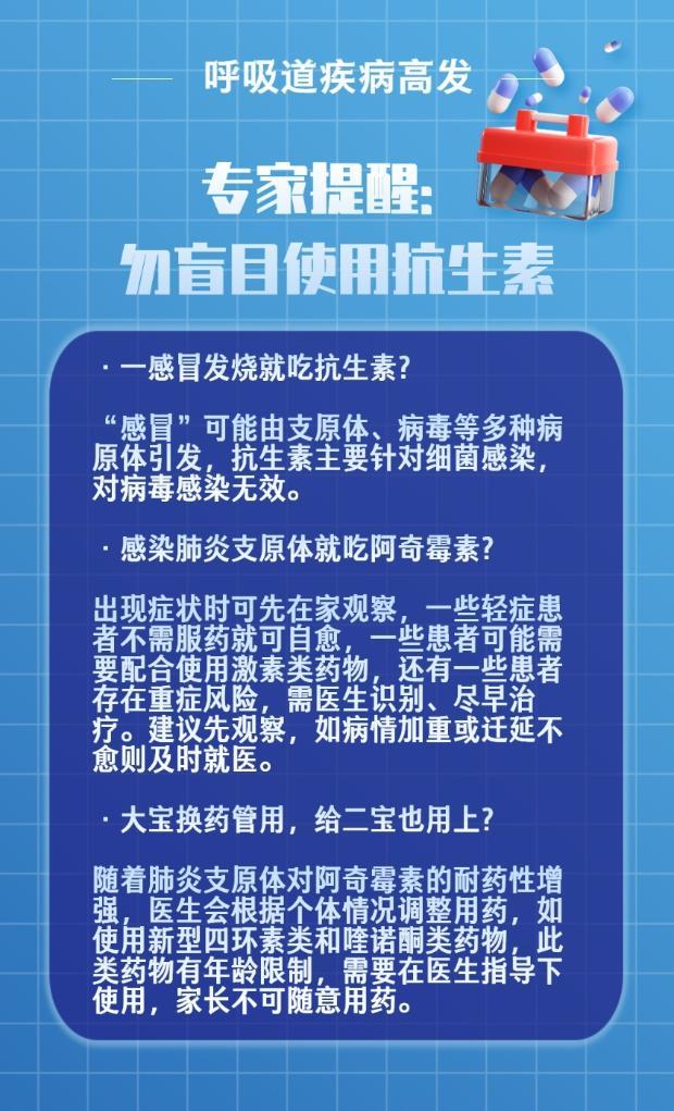 隨著氣溫下降,近期北方多地呼吸道疾病高發(fā),兒童呼吸道感染患者增多。專家提醒,不同病原體引起的感染需要用不同的藥物對癥治療,盲目使用抗生素不僅不能起到治療作用,還可能延誤病情。