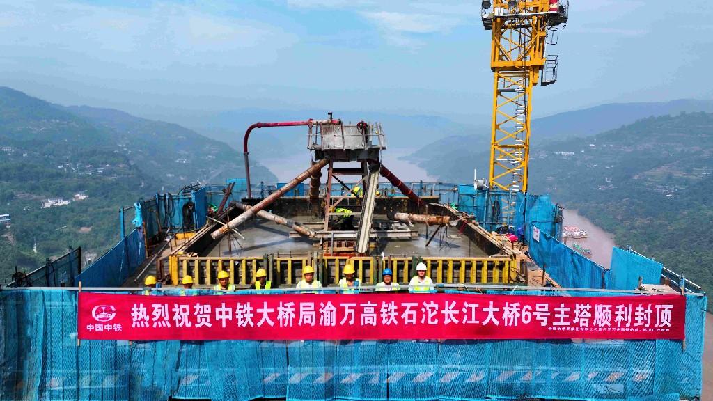 石沱長江大橋位于重慶市涪陵區(qū),是渝萬高鐵全線控制性工程,由渝萬鐵路有限責任公司建設管理,中鐵大橋局承建。該橋主橋全長1056米,主跨608米,首次采用公鐵合建雙聯(lián)塔、公鐵同層分幅主梁的新時代橋梁,其6號主塔高253米,是世界最高雙聯(lián)主塔。