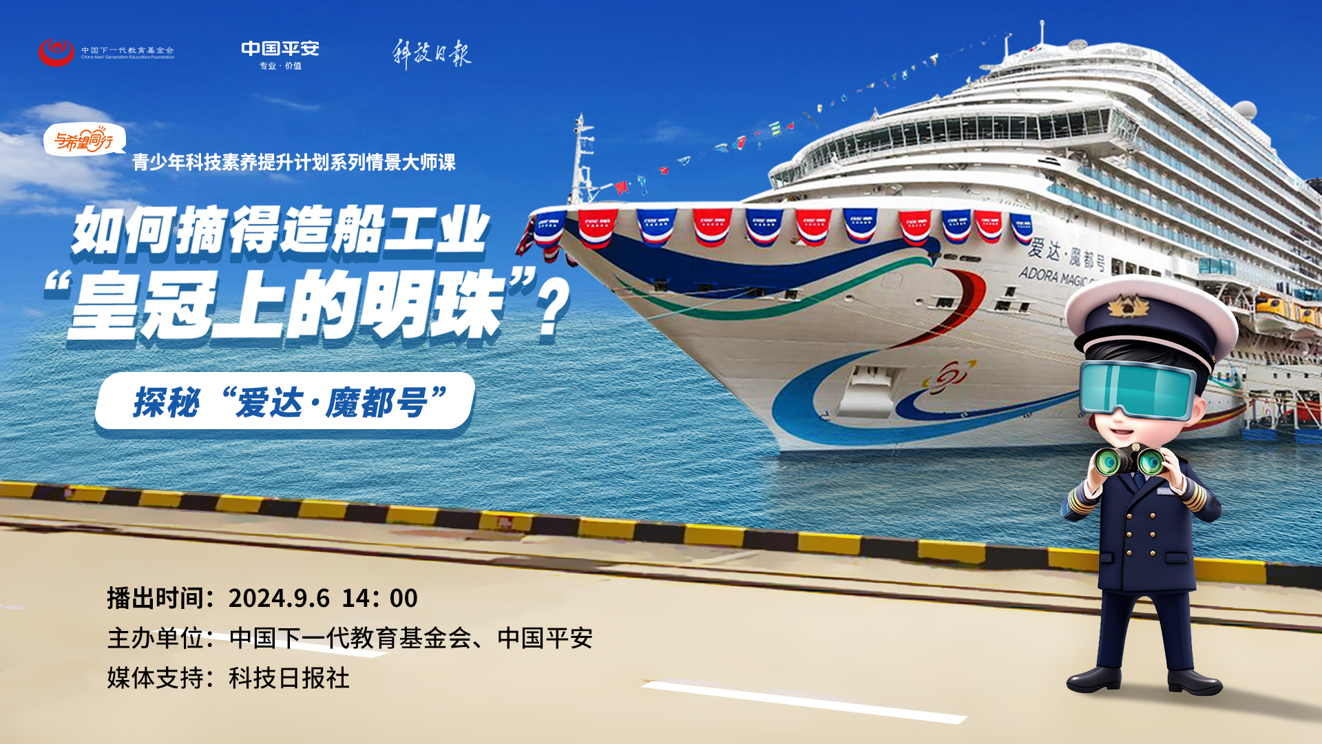 總長323.6米,總噸位13.55萬噸,約24層樓高的“愛達(dá)·魔都號”,光零部件就有2500萬個,相當(dāng)于大型飛機(jī)C919的5倍、復(fù)興號高鐵的13倍。我國是如何摘取這顆造船業(yè)“皇冠上的明珠”的?9月6日14:00,青少年科技素養(yǎng)提升計劃情景大師直播課帶你一起登上“愛達(dá)·魔都號”,深入亞洲第一大船塢——外高橋造船廠,去揭開它背后的秘密!