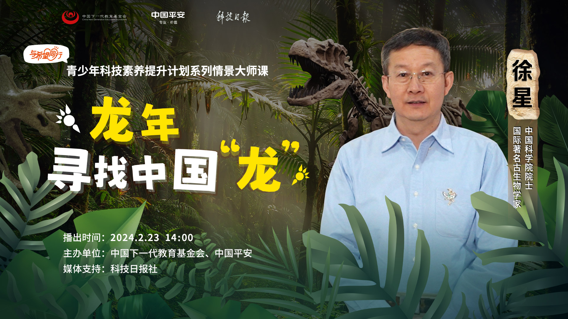龍真的存在嗎?恐龍和龍是什么關系?恐龍滅絕了嗎?2月23日14:00,青少年科技素養提升計劃系列情景大師課走進中國古動物館,邀請中國科學院院士、國際著名古生物學家徐星,在龍年與大家開啟一場“探龍之旅”,揭開史前巨獸的科學奧秘。