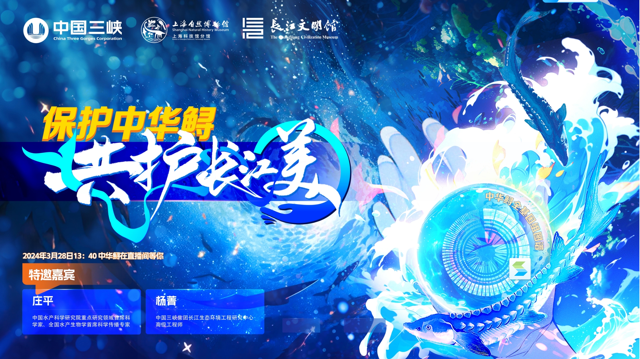 三峽集團與上海自然博物館、武漢自然博物館聯合直播,共同帶你感受中華鱘回家之旅,見證中華鱘歸江。3月28日13:40,敬請關注!