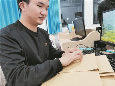 聽障生賈賓展示打印的口腔模型??萍既請笥浾?王延斌 攝