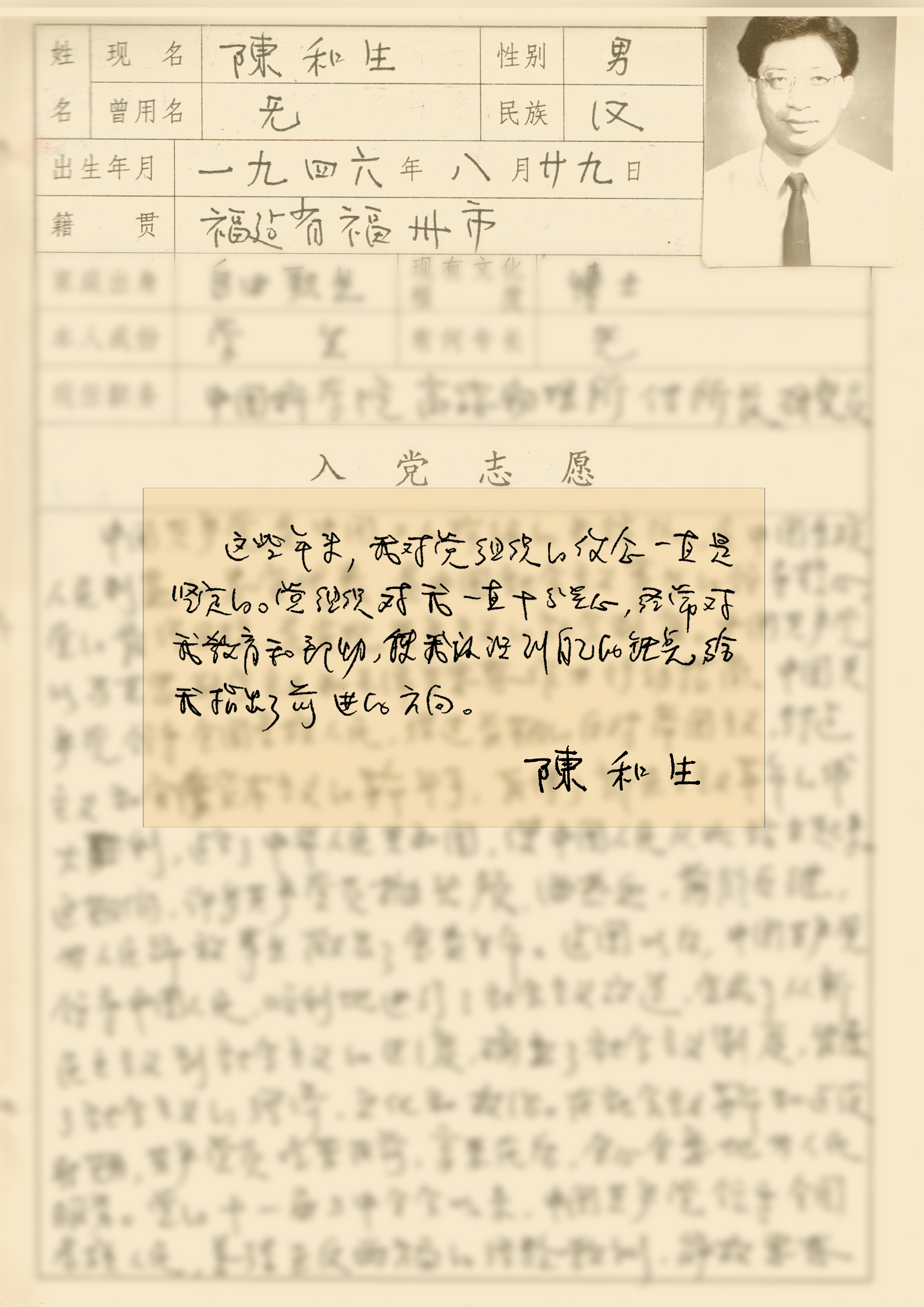 ——摘自陳和生《入黨志愿書》